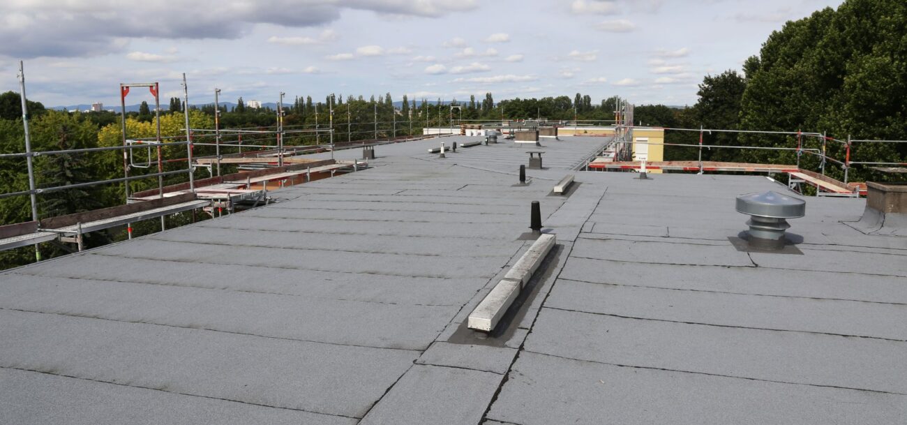 A solução clássica e robusta, ideal para grandes áreas. Consiste na aplicação de camadas de betume modificado reforçadas com armaduras de poliéster.